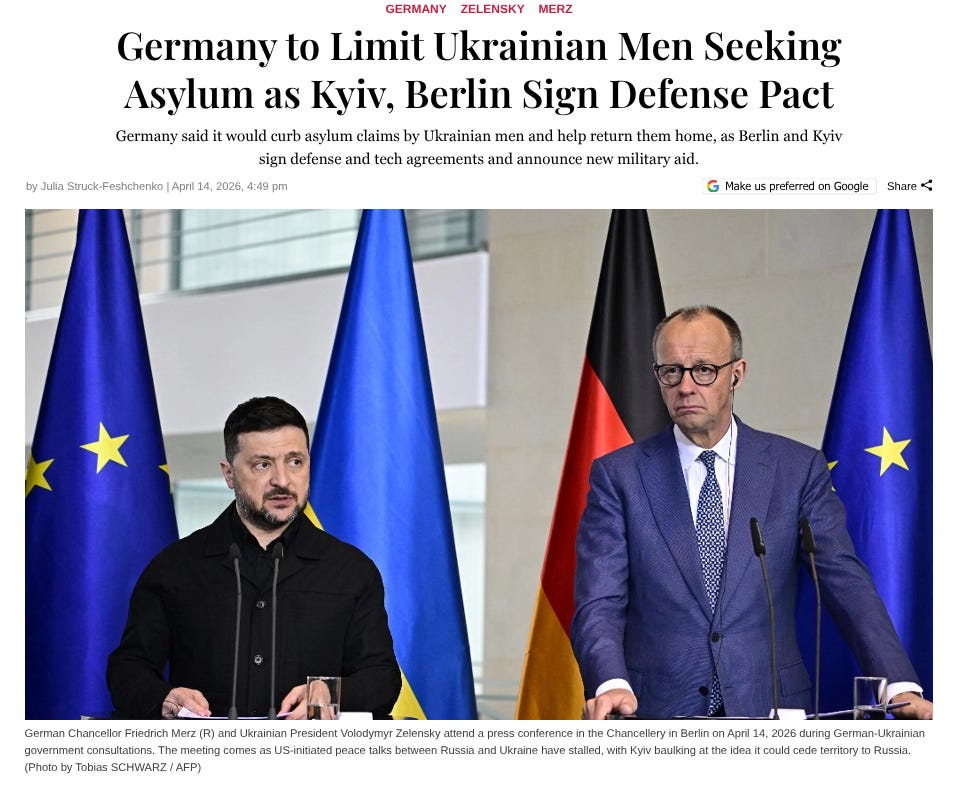 He also told those present he doubted the majority of Ukrainians who left after 2022 would ever return. Again, a different tone to Zelensky, who recently got German chancellor Mertz to chant alongside him that it was time to force Ukrainian men abroad to come home.