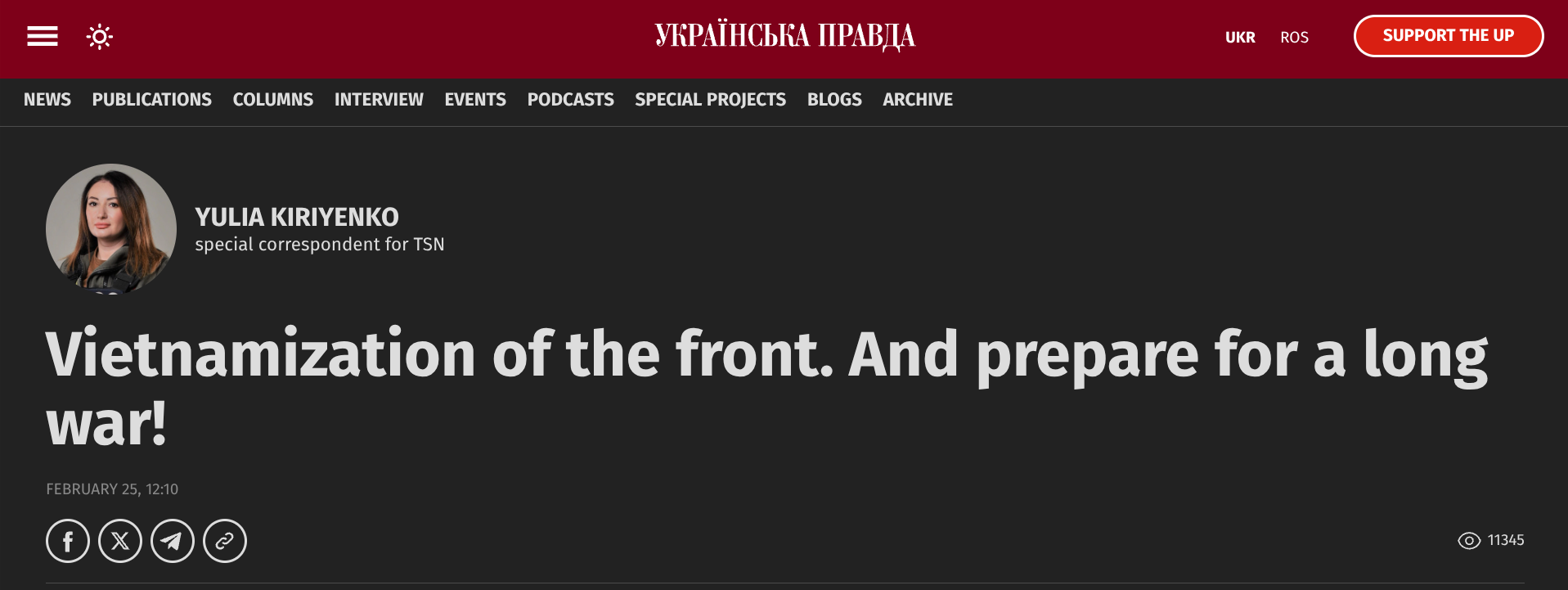 On February 25, the well-known military correspondent for the television channel TSN published her own column for Ukrainska Pravda. The title is quite suggestive: