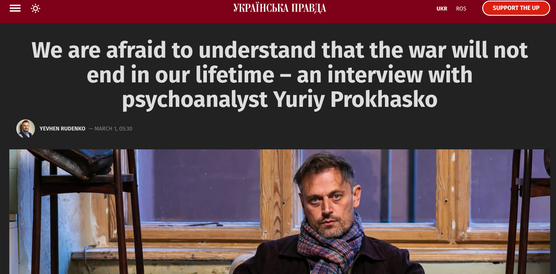 In a March 1 publication, a psychoanalyst interviewed by Ukrainska Pravda informs readers that it is necessary to accept the long-term continuation of the war.