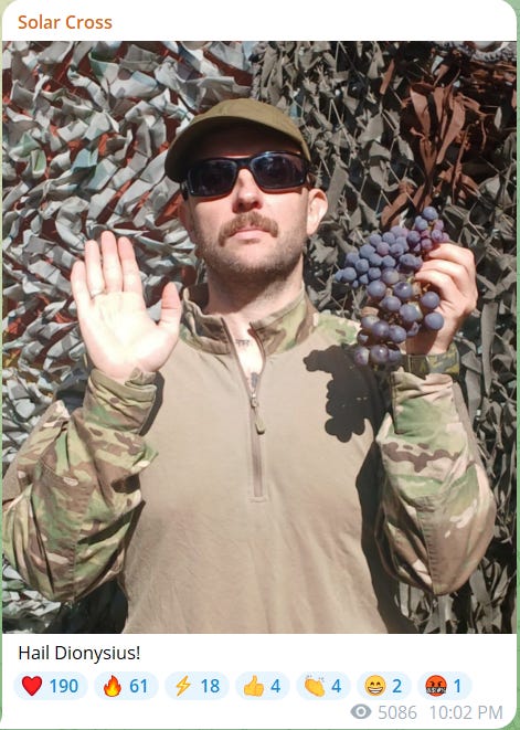 In fact, Kirill Kanakhin, a Russian failed actor-cum-neo-nazi who now fights on Ukraine’s side, wrote on telegram that he had been around the ‘O9A for years’, and specifically in the Temple of the Black Sun. He also wrote that he had been close friends with the artist who made the cover for the Temple of the Black Sun’s 2013 novella. In short, the timeline seems to indicate that Temple of the Black Sun was always into the O9A. But that is quite clear from reading their 2013 novel itself.