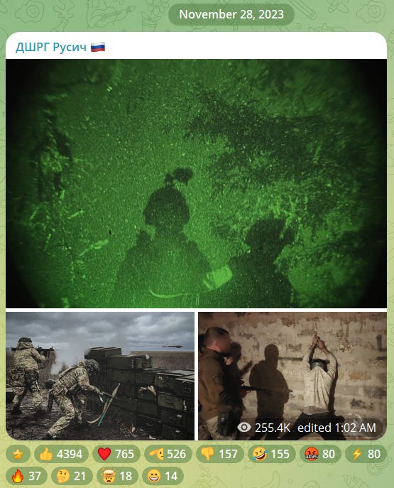 There was also the declaration of cryptocurrency rewards for videos showing the execution of Ukrainian POWs recently. I covered it here, as well as the Ukrainian counter-competition. Rusich also deleted that post fairly quickly.