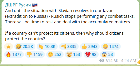 And in April 2024, prominent Rusich fighter and nationalist blogger Evgeny Razzkazov lost a court case against a left patriotic Russian senator. The court ordered Razzkazov to pay 500,000 rubles in compensation.