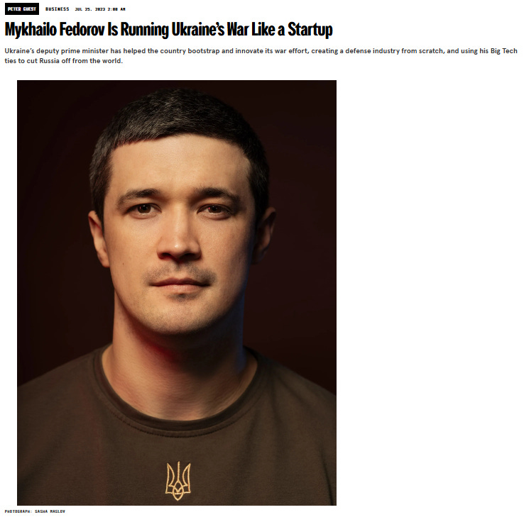 Mikhailo Fedorov has been crafted into the great white hope of the neoliberal reformers, who love to underline that he is Ukraine’s youngest minister in history. The western press never stop glazing him. Elon Musk back before he alienated half of reddit.