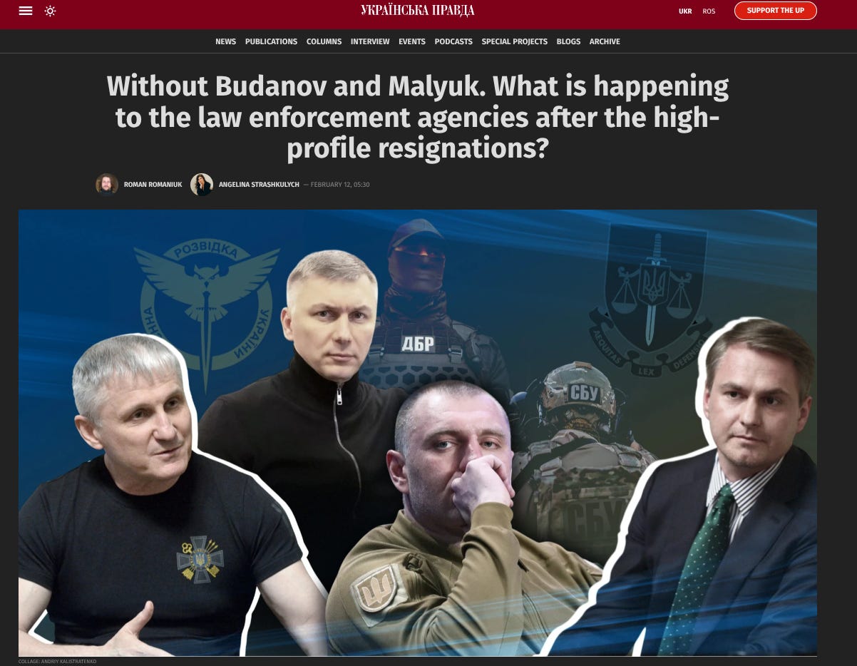 Our first source is a February 12 article by the western-owned publication Ukrainska Pravda. It looks at how Zelensky has been trying to reconsolidate control over the various intelligence agencies after the attack on Zelensky’s inner circle in November 2025 by the western-funded anti-corruption organs.