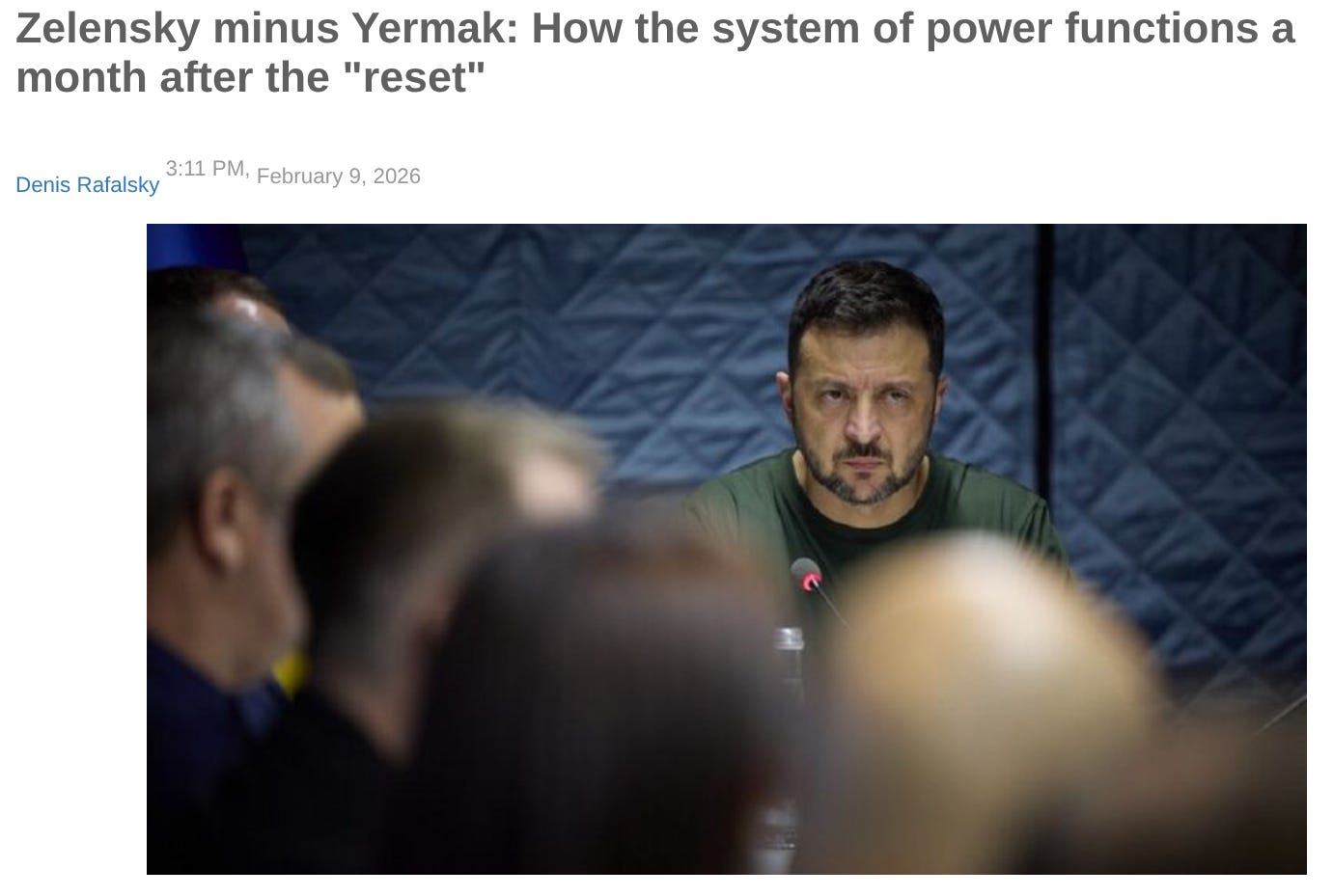 Our second source is a somewhat similar February 9 article by the more neutral Ukrainian publication strana.ua. Strana.ua has been sanctioned by Zelensky since 2021 as excessively critical of his pro-NATO course, but it retains some journalists in Ukraine and enjoys a number of high-level sources in the Ukrainian elite. Their latest article examines how Zelensky has come to rely on a broader pool of advisors following the November 28 resignation of his old chief of staff, Andriy Yermak.